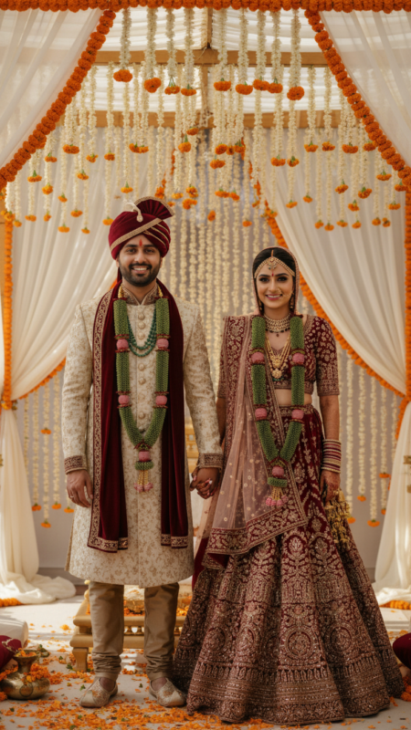 Wedding Garland – Red – 2.5 Feet – 2 Mala (Bride & Groom)